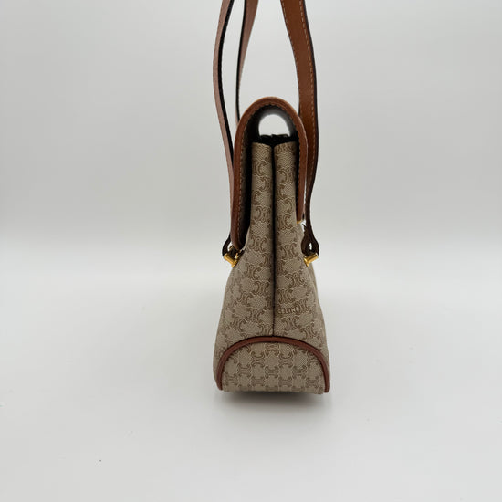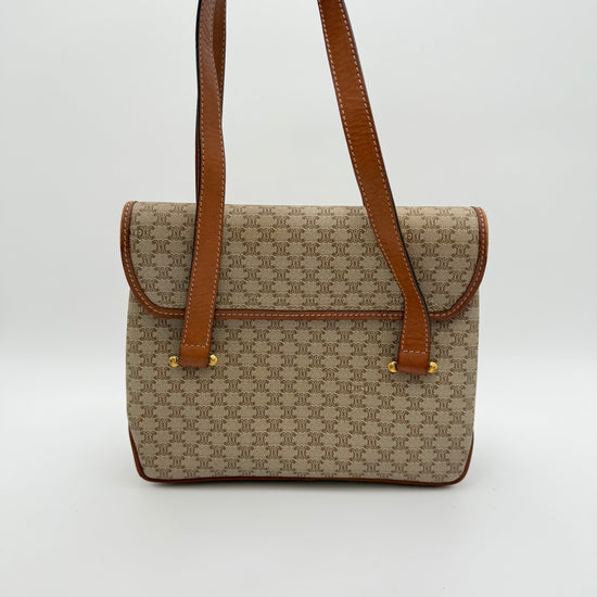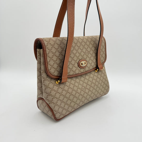 Le Céline Macadam Shoulder Bag est un modèle emblématique de la Maison, reconnaissable à sa toile Macadam iconique et ses finitions en cuir marron qui lui confèrent une allure vintage élégante et intemporelle. Son fermoir signature doré ajoute une touche de caractère tout en restant discret et raffiné.