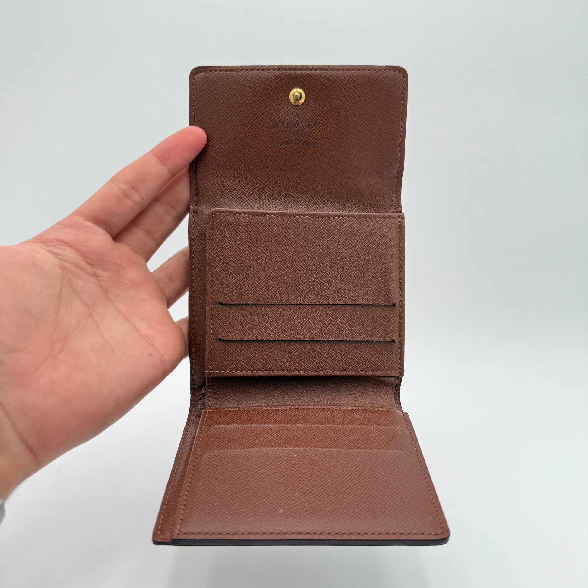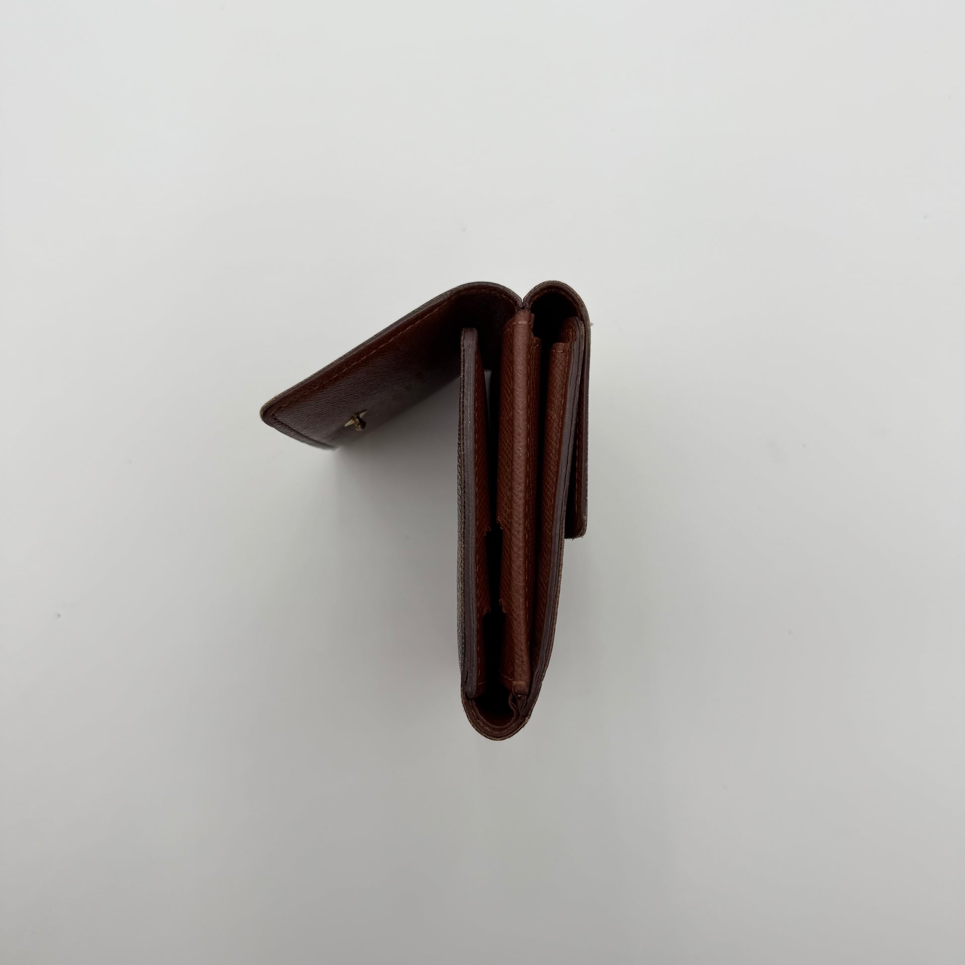 L’Élise s’ouvre en deux volets et propose de multiples rangements : fentes pour cartes, compartiments plats, espace billets et large poche monnaie à soufflet. Un modèle recherché pour son praticité, son design vintage et son charme authentique Louis Vuitton.