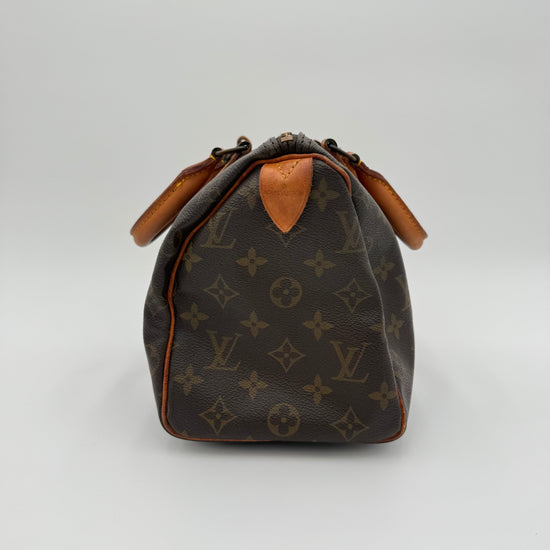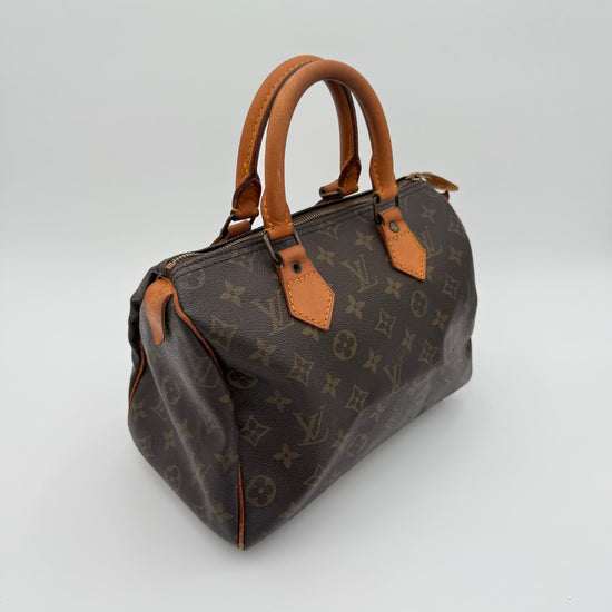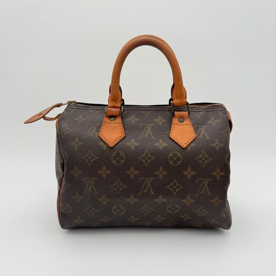 Le Speedy 25 est l’un des modèles les plus emblématiques de Louis Vuitton. Compact, léger et ultra-pratique, il offre l’équilibre idéal entre élégance et capacité. Sa silhouette arrondie, associée à la toile Monogram vintage, en fait une pièce recherchée qui traverse les années sans jamais perdre de son charme.